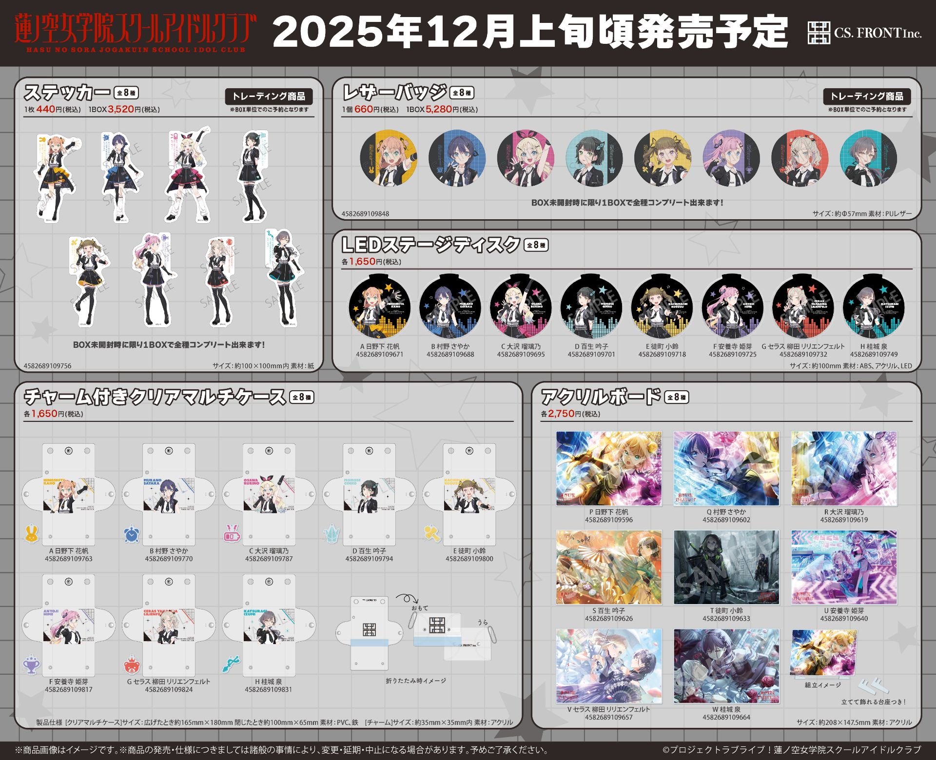 CS.FRONTより『ラブライブ!蓮ノ空女学院スクールアイドルクラブ』の新商品が発売開始♪